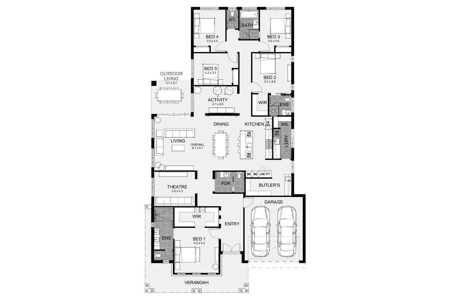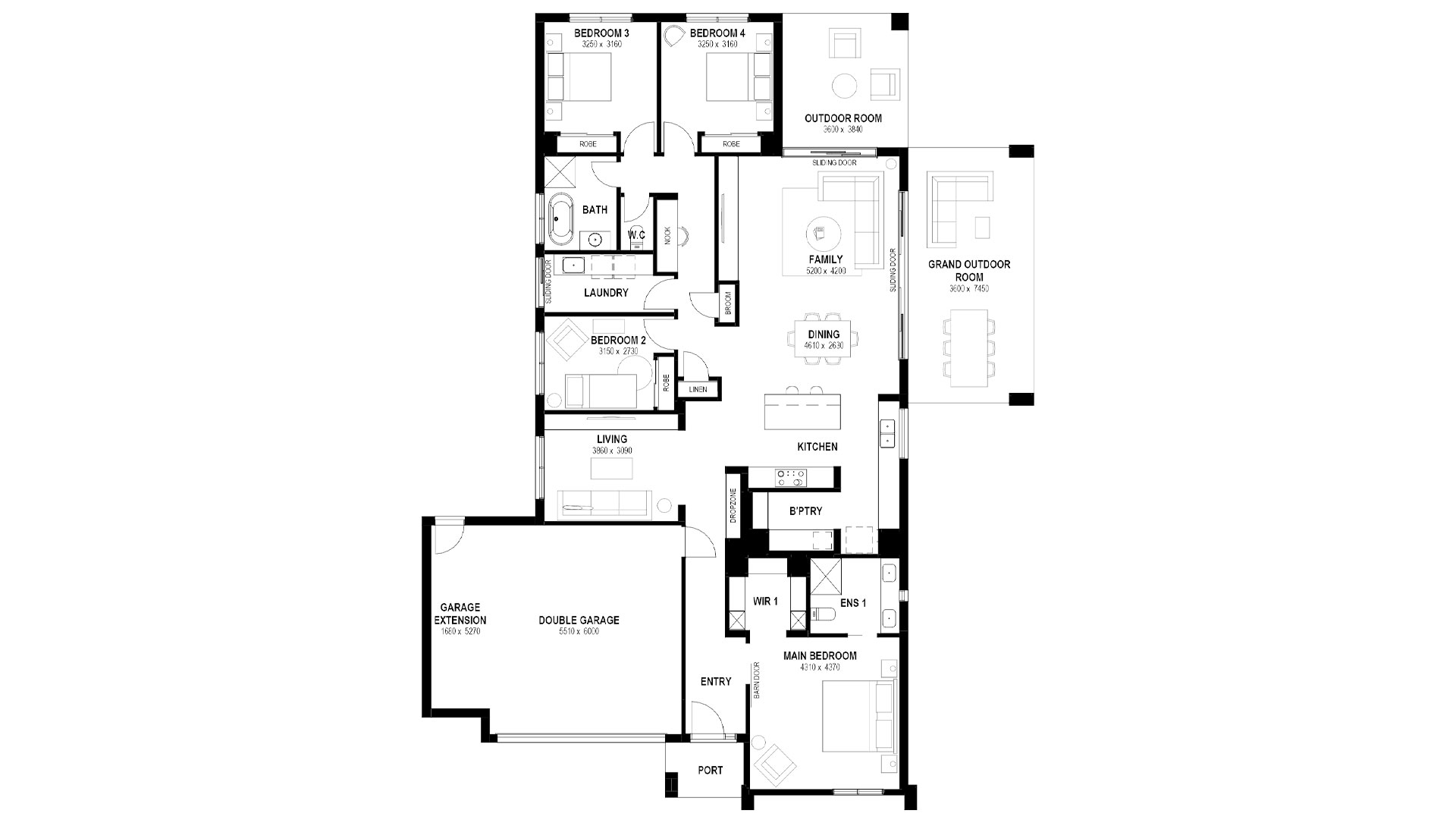 The Amira 25S is designed for families who want space, flexibility, and a home that works as beautifully as it looks. The master suite sits privately at the front of the home, while the three remaining bedrooms are zoned together at the rear. At the heart of the home, a central kitchen with an L-shaped island bench and walk-in pantry flows seamlessly into the family and dining room.